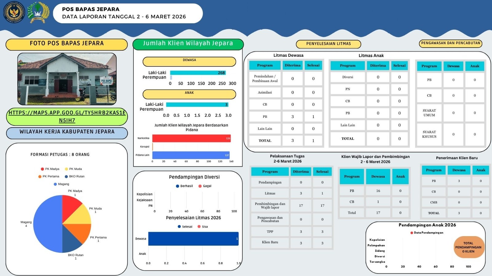 Laporan Infografis 6-10 April 2026 Infografis Laporan Infografis 13-17 April 2026 Pos Bapas Jepara April 17, 2026 Read More Kegiatan...