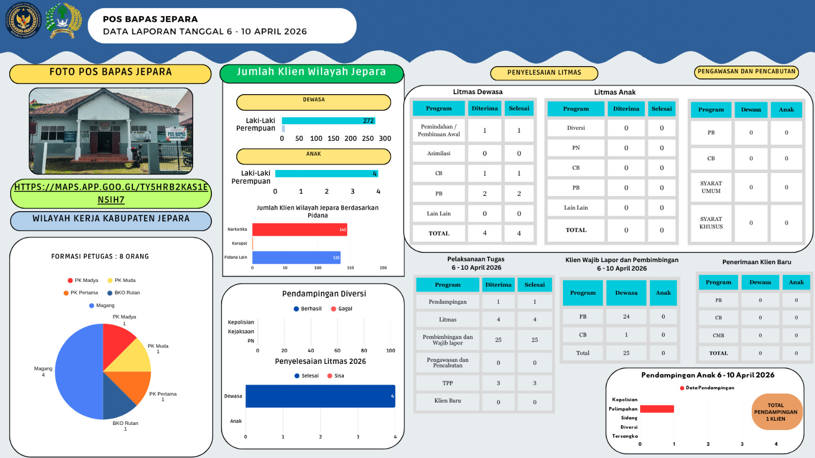 Laporan Infografis 6-10 April 2026 Infografis Laporan Infografis 13-17 April 2026 Pos Bapas Jepara April 17, 2026 Read More Kegiatan
